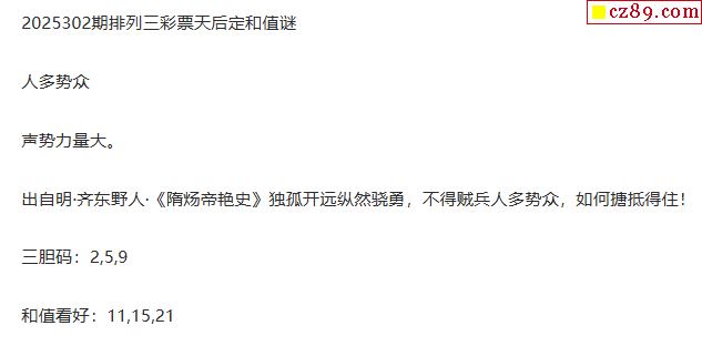 彩票天后p3定和值谜25年302期