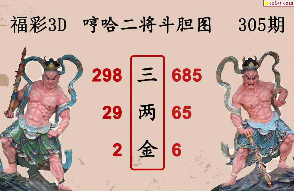 福彩3D2025305期 白鱼舟3D图谜哼哈二将斗胆图