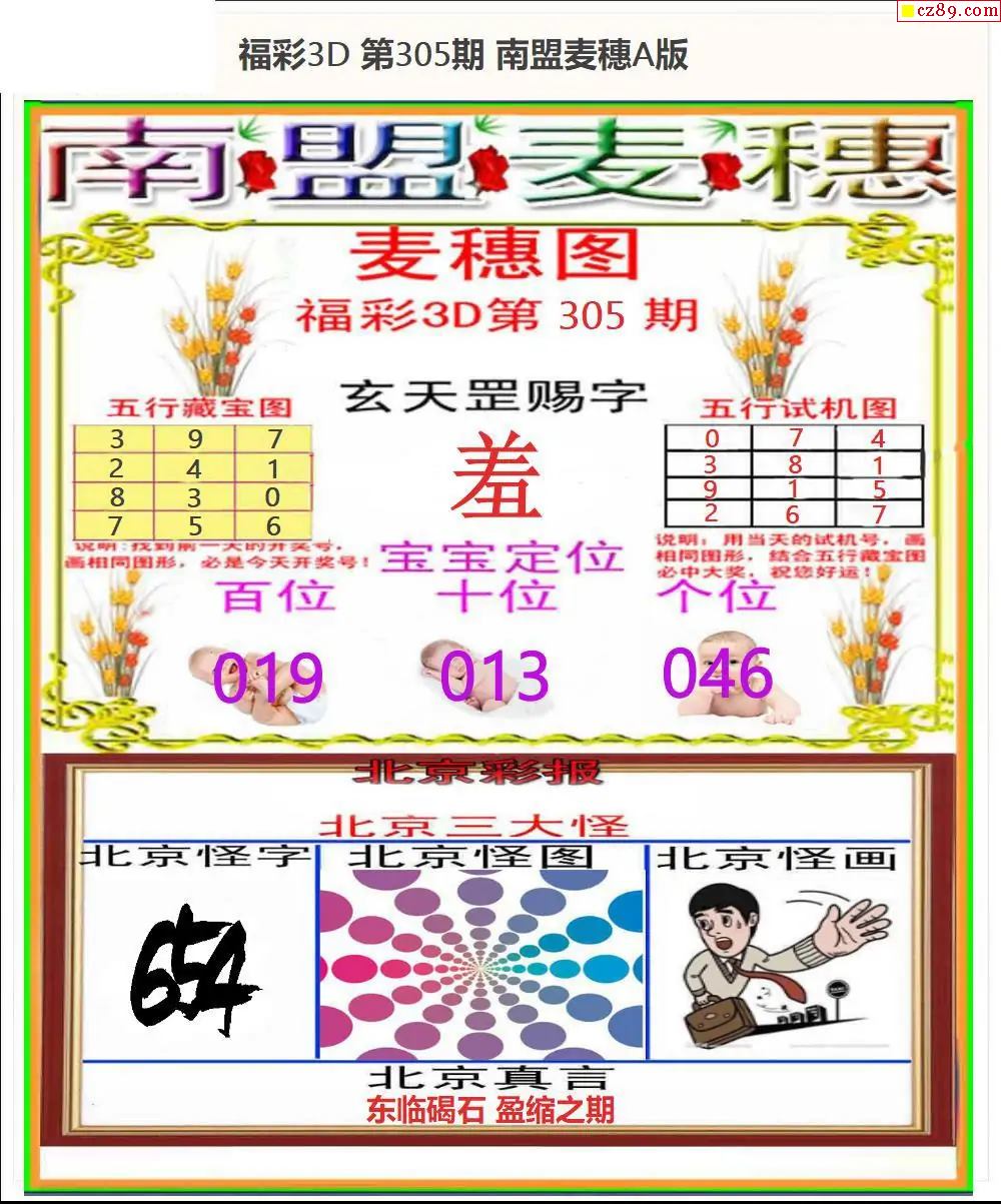 福彩3D2025305期南盟麦穗AB版+南盟扣号AB版