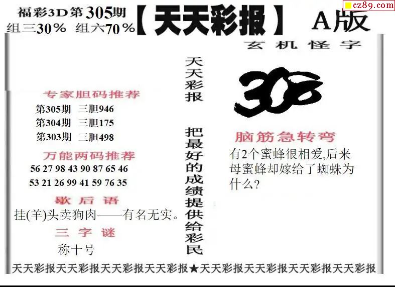 福彩3D2025305期天天彩报A版 天天彩报B版