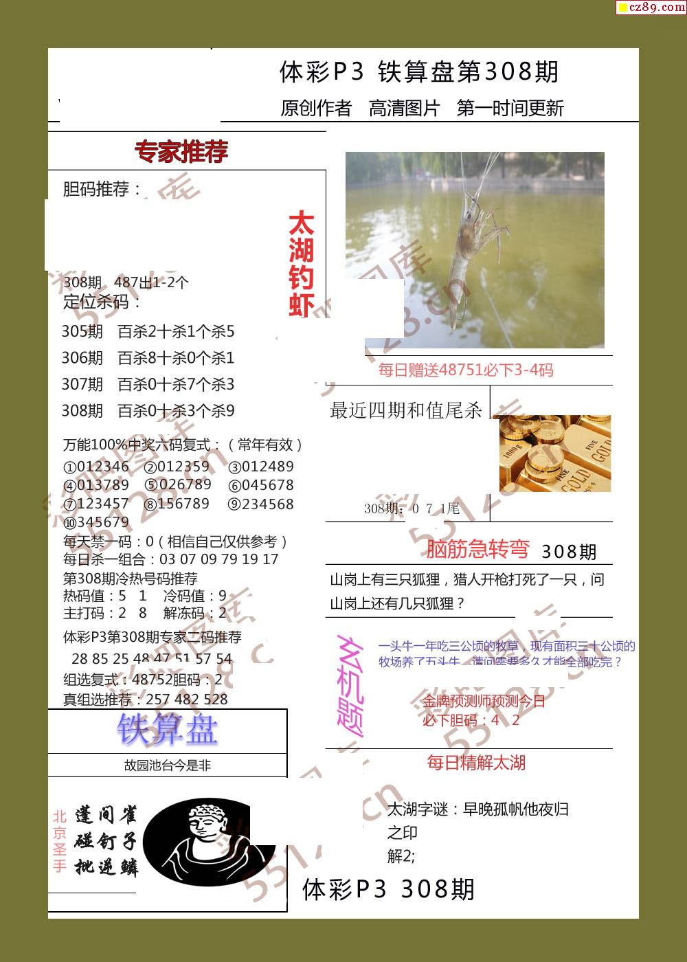铁算盘308期体彩p3图谜
