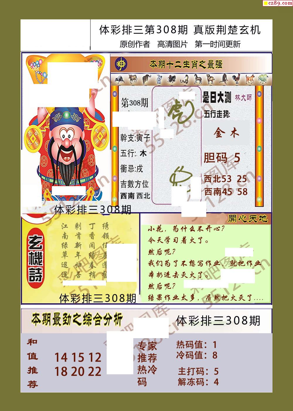 荆楚玄机308期体彩p3图谜