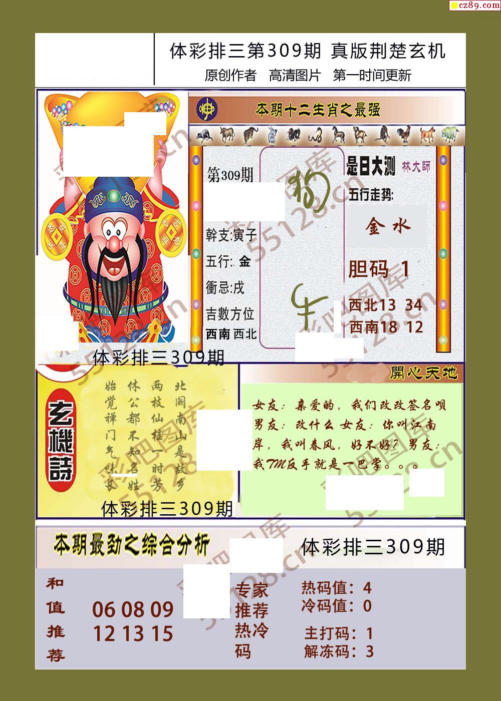 2025年309期牛彩网体彩P3画迷图谜汇总分享