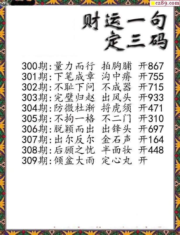 福彩3D2025309期财运一句定三码字图谜