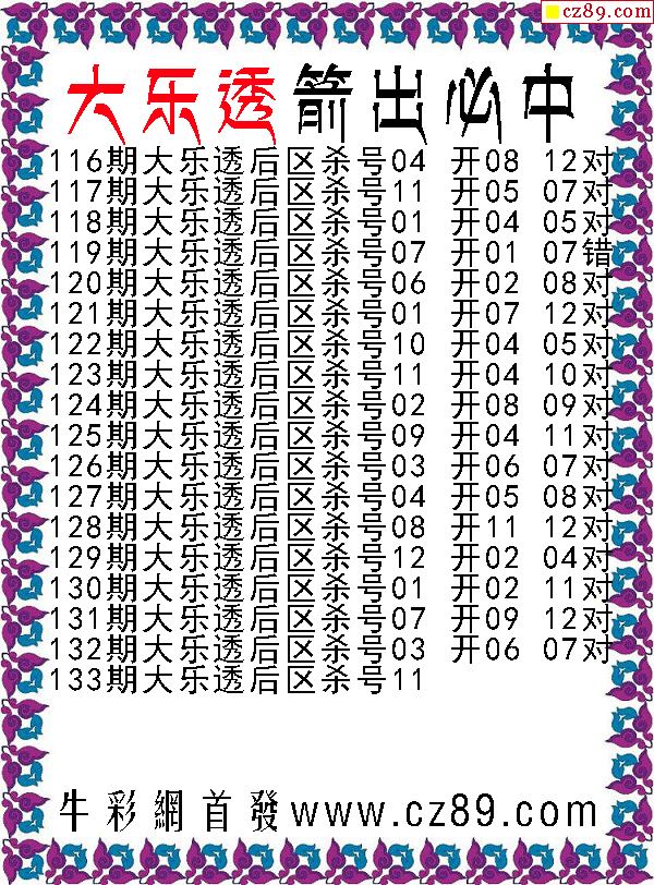 大乐透139期牛彩特邀专家前区后区杀号定胆图表