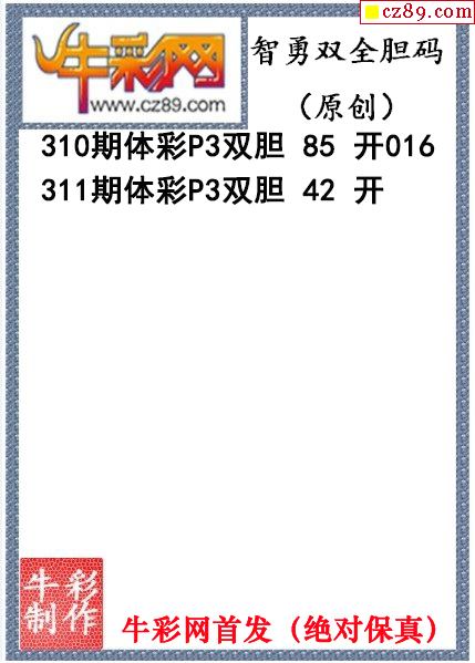 神彩飞扬三胆311期体彩P3图谜(原创)