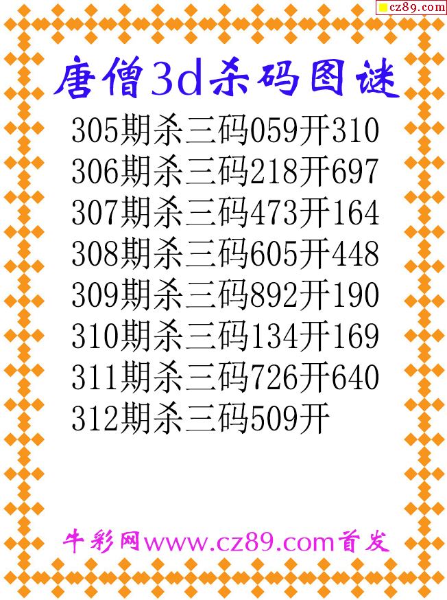 唐僧杀码25312期3d原创图谜