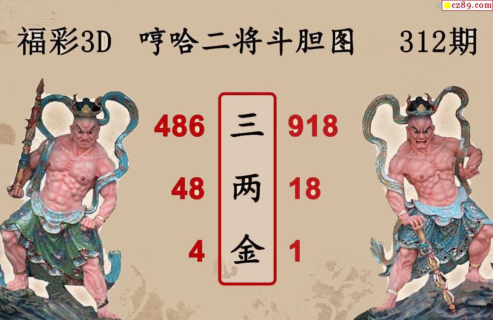 福彩3D2025312期 白鱼舟3D图谜哼哈二将斗胆图