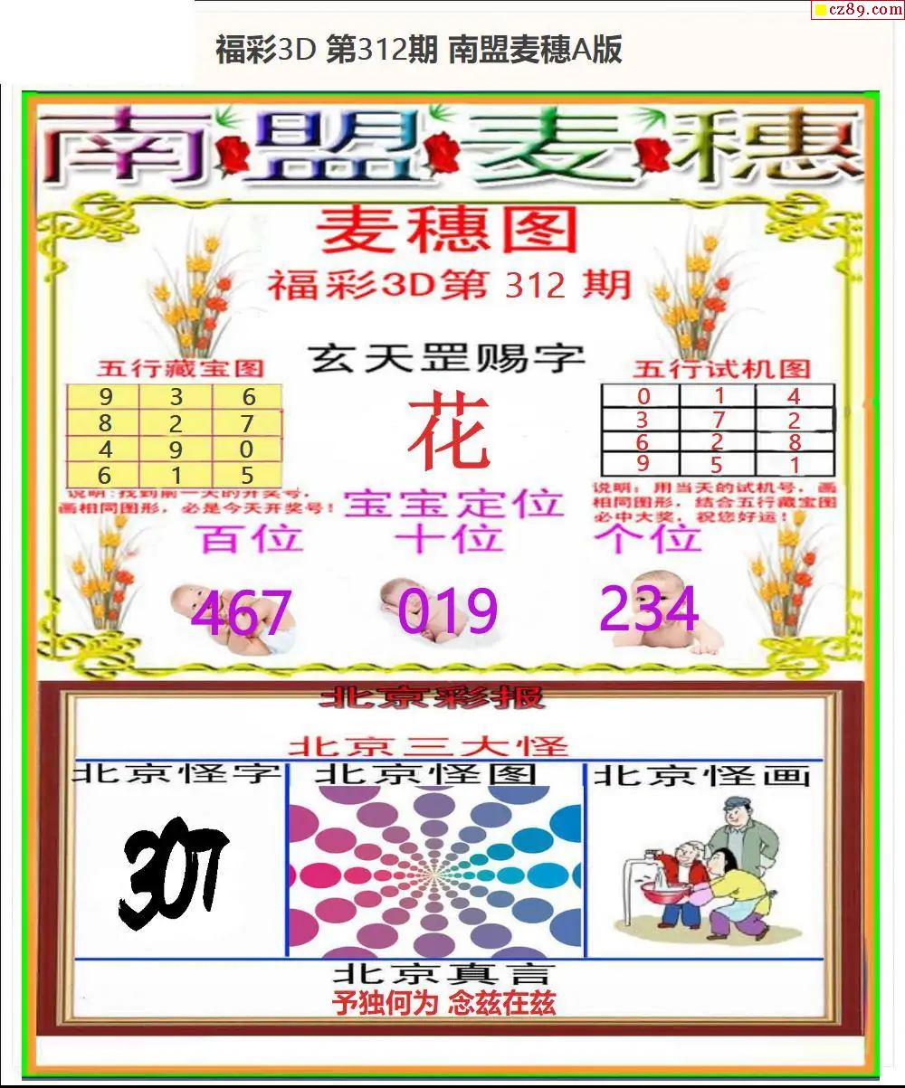 福彩3D2025312期南盟麦穗AB版+南盟扣号AB版