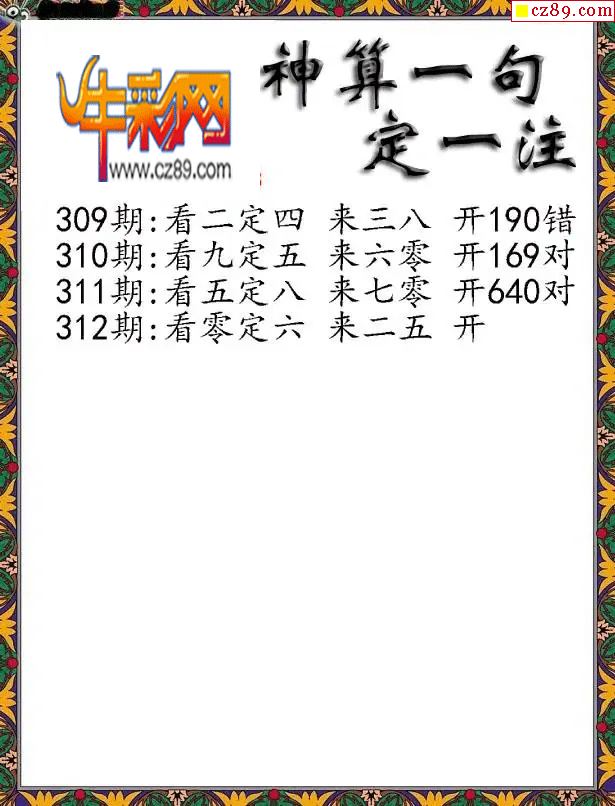 牛彩版3D字谜彩报图25年325期打印版