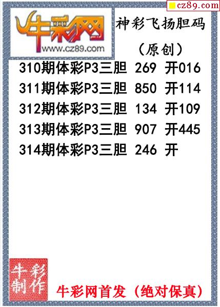 神彩飞扬三胆314期体彩P3图谜(原创)