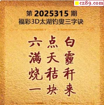25年315期3d字谜太湖钓叟三字诀《保真》
