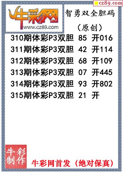 神彩飞扬三胆315期体彩P3图谜(原创)