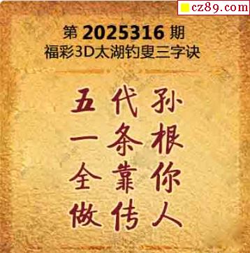 25年316期3d字谜太湖钓叟三字诀《保真》