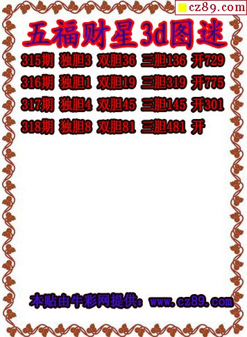 五福财星三胆2025318期3d图谜(原创)