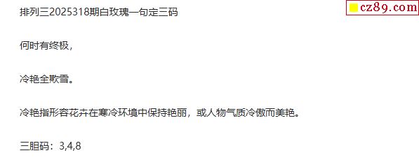 体彩排三2025年325期 武当玉女掌门一句定三码