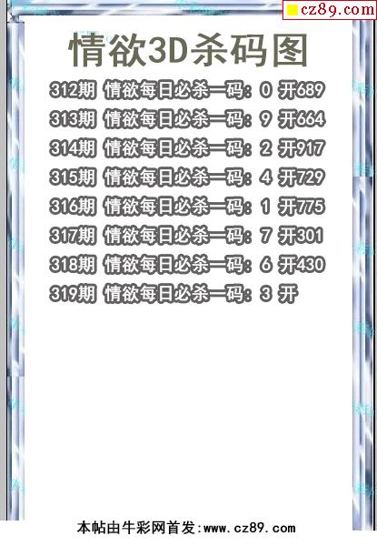 牛彩狙击手杀码2025319期3d图谜(原创)