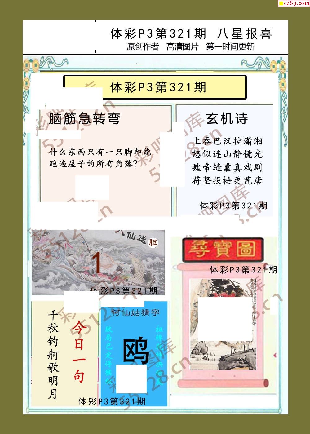 八星报喜321期体彩p3图谜