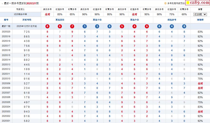 25年325期彩宝贝专家体彩P3杀号定码图表