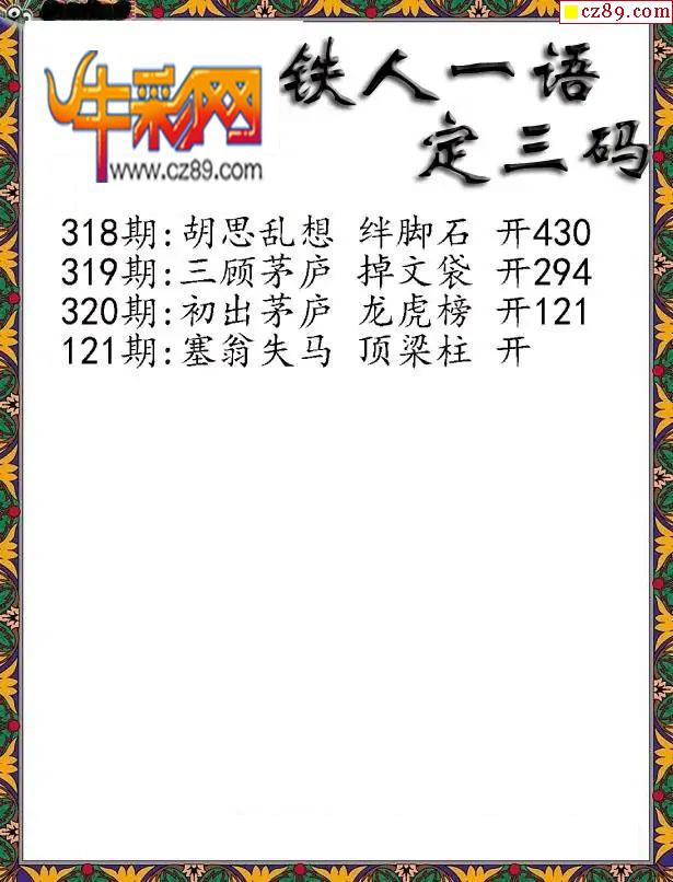 福彩3D2025321期福彩金刚一句定三码字图谜