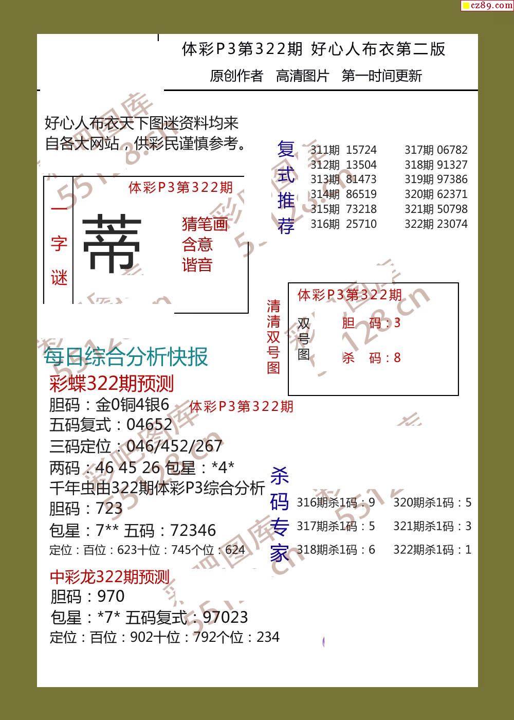 好心人布衣AB版322期体彩p3图谜