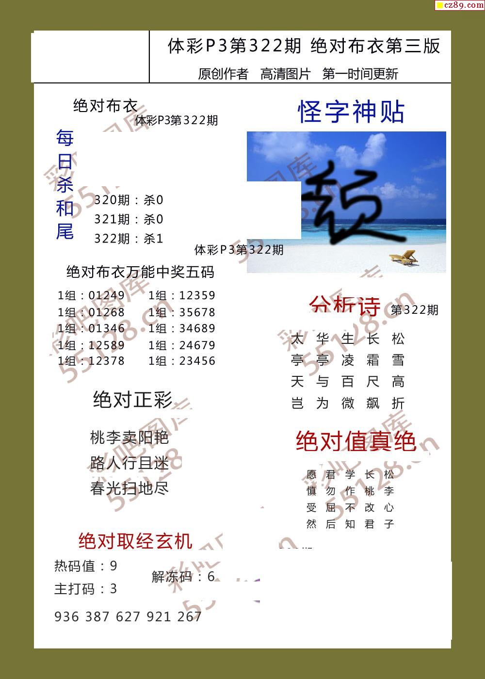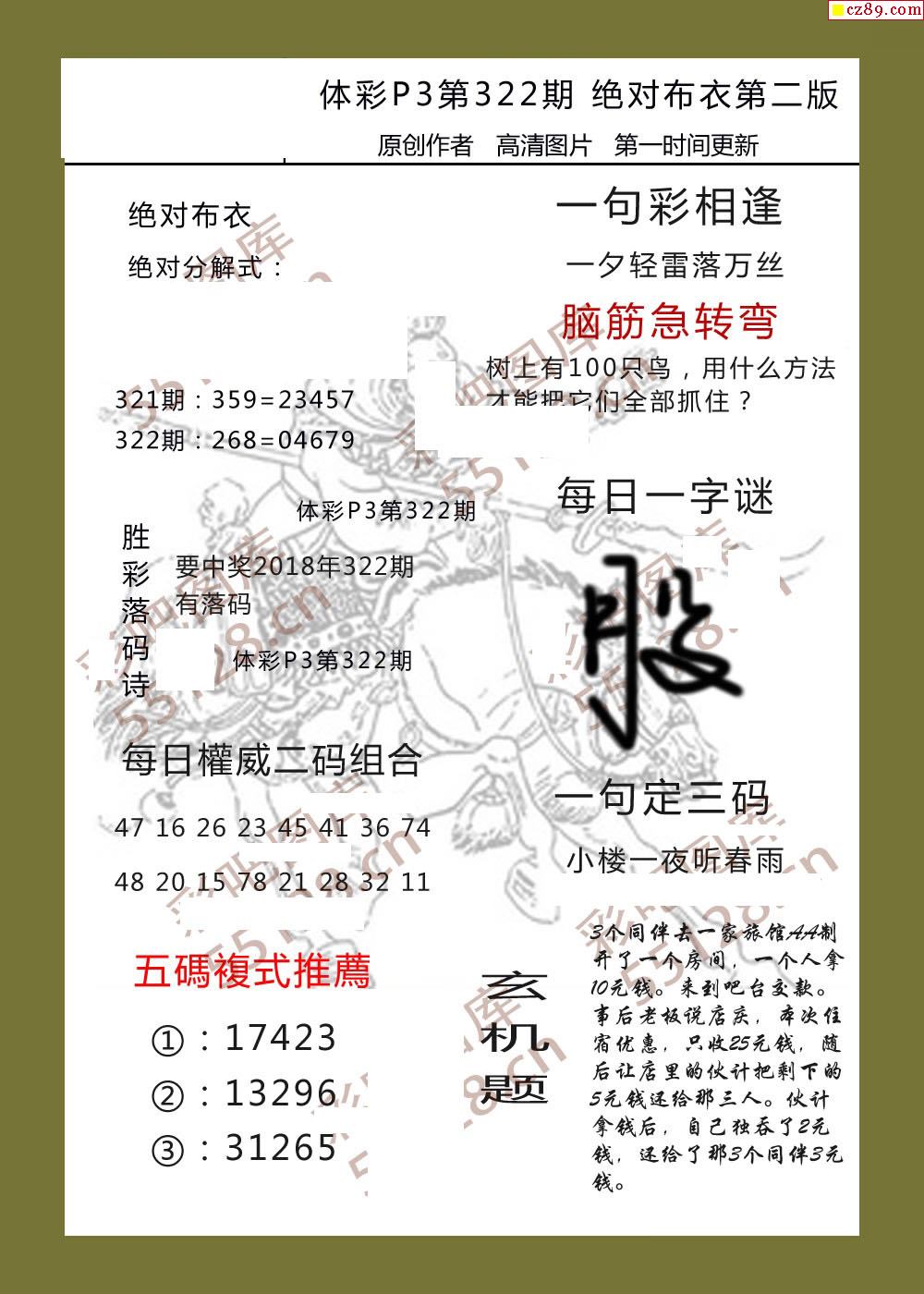 2025年325期牛彩网体彩P3画迷图谜汇总分享