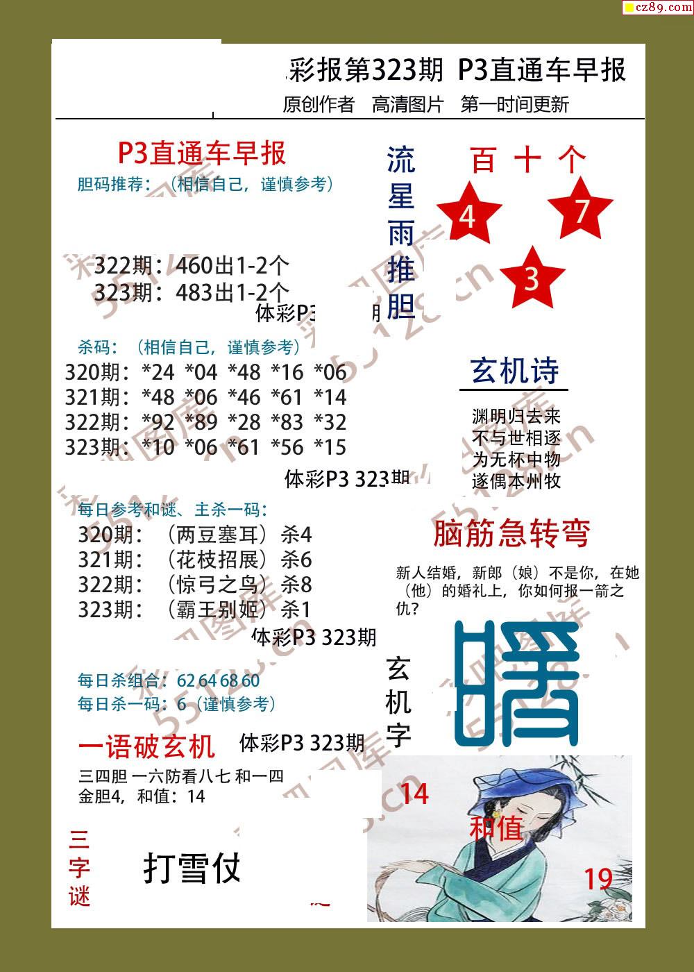 2025年325期牛彩网体彩P3画迷图谜汇总分享