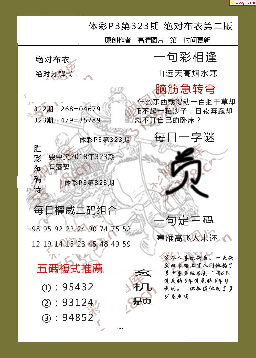 2025年325期牛彩网体彩P3画迷图谜汇总分享