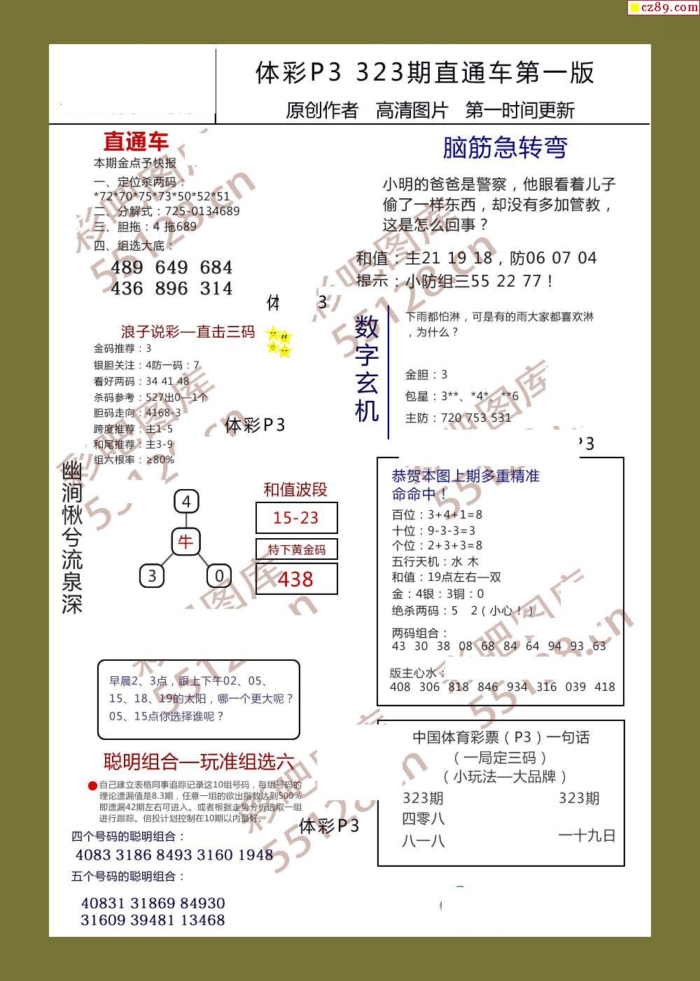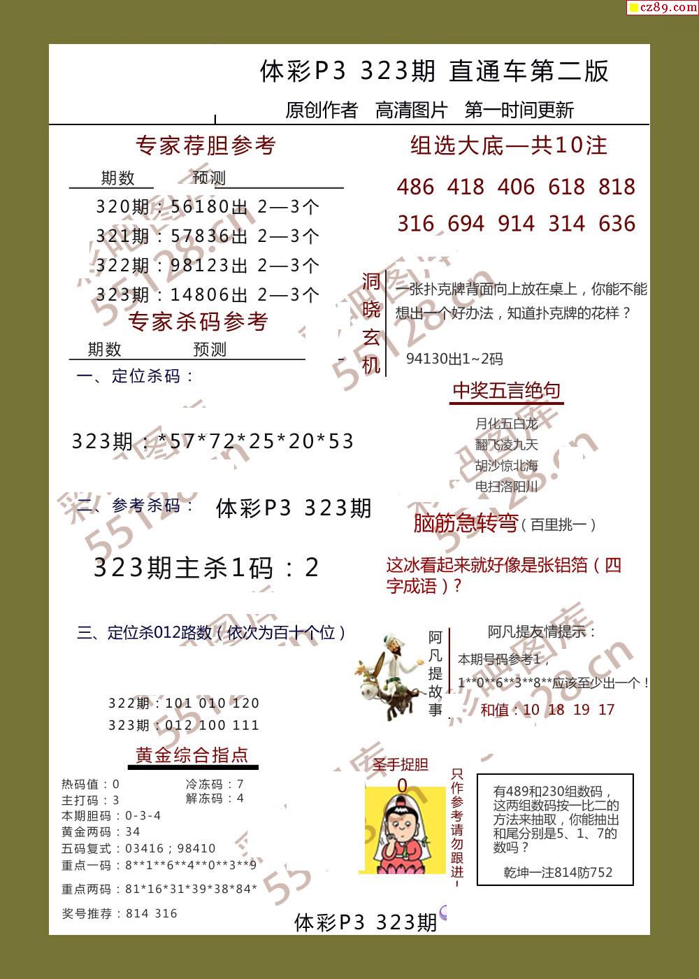 直通车早版323期体彩p3图谜