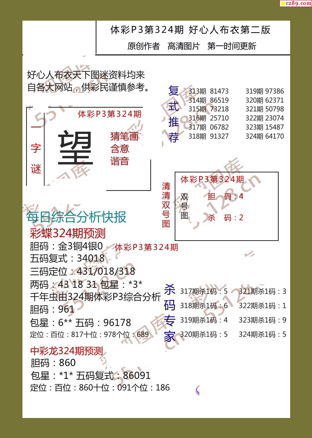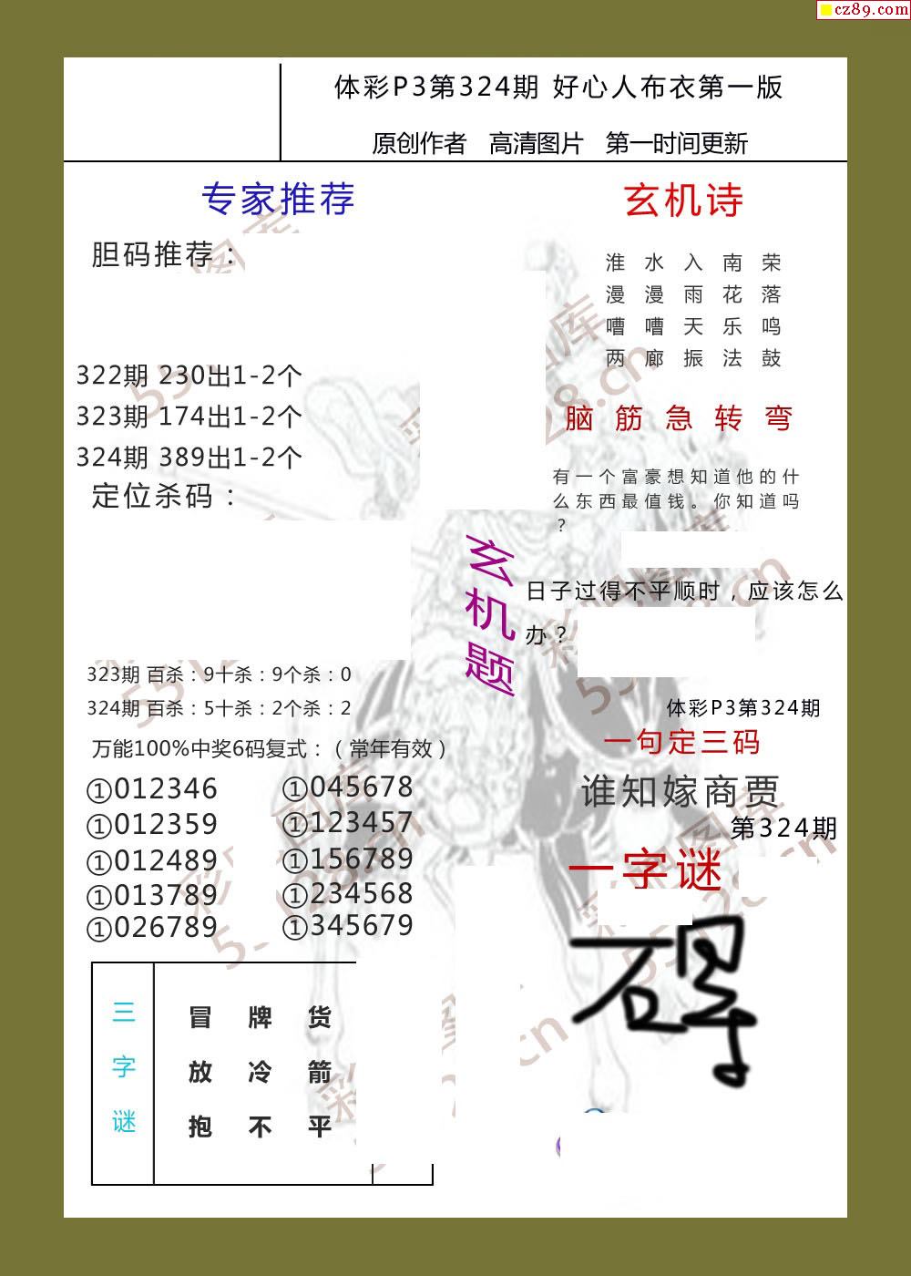 好心人布衣AB版324期体彩p3图谜