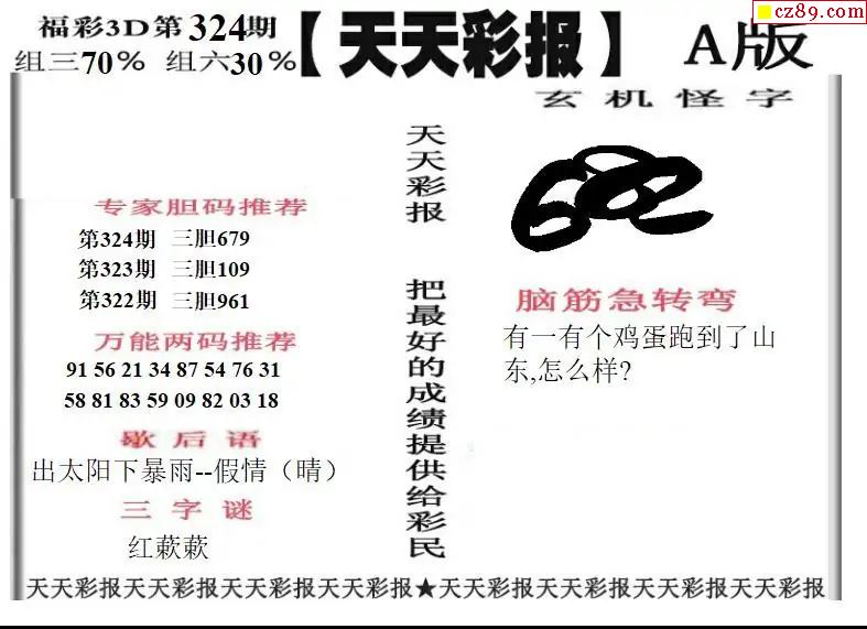福彩3D2025324期天天彩报A版 天天彩报B版