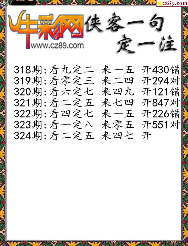 牛彩版3D字谜彩报图25年325期打印版