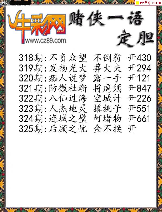 福彩3D2025325期彩赌侠一句定三码字图谜