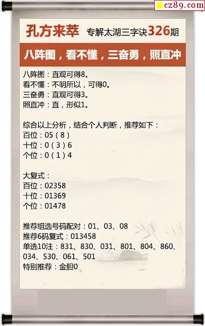 马后炮解25年326期3d太湖钓叟之 八阵图