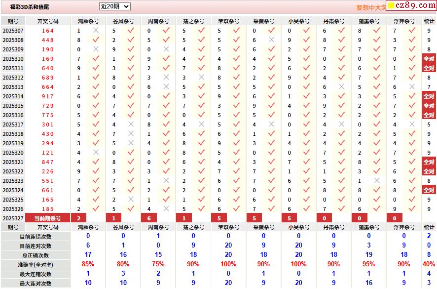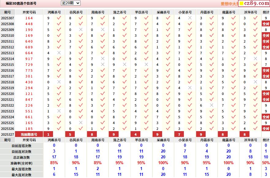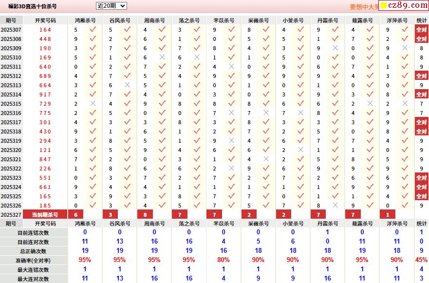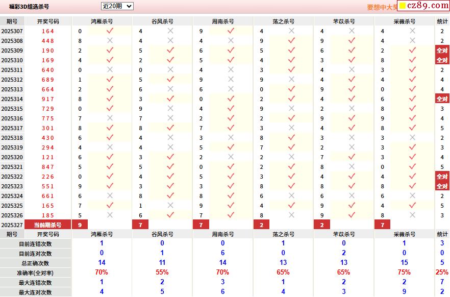 25年327期彩宝贝专家福彩3D杀号定码图表