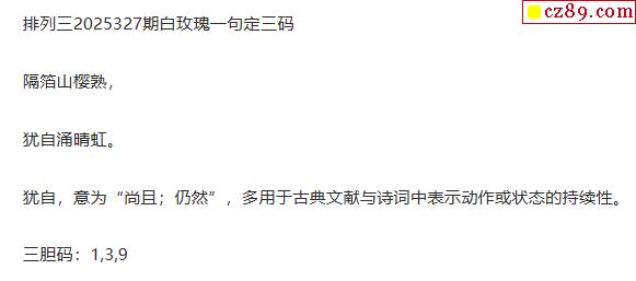 体彩排三2025年328期 武当玉女掌门一句定三码