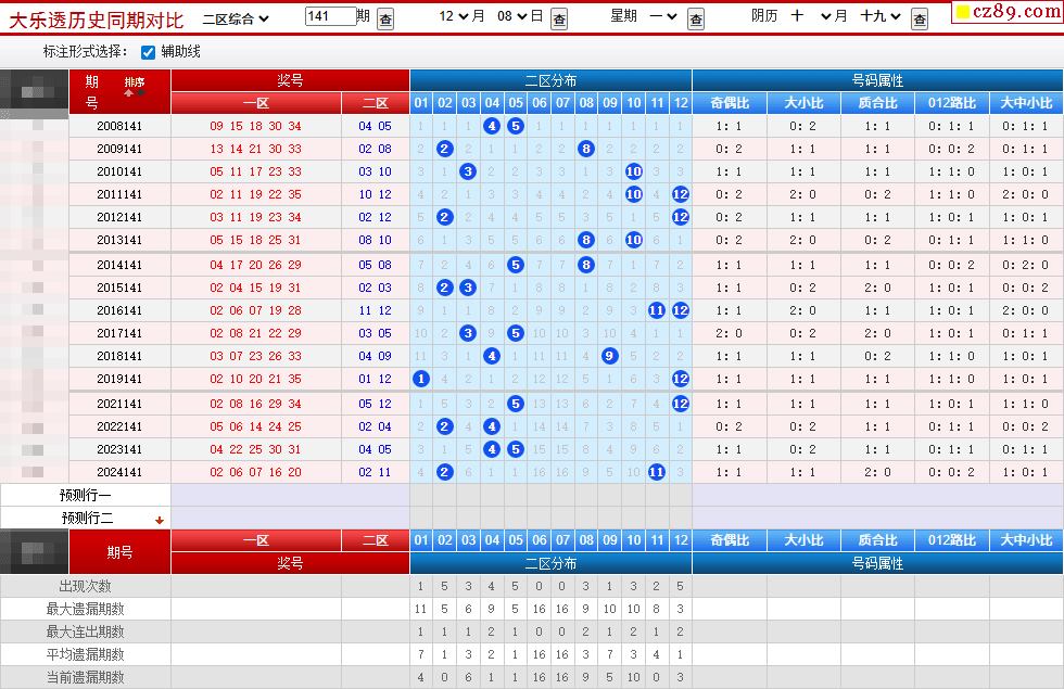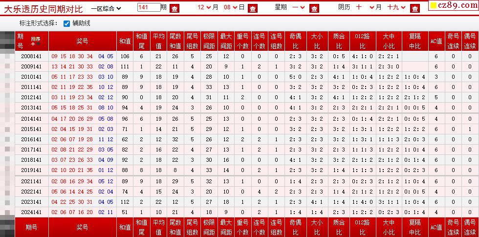 141期大乐透历史同期对比图