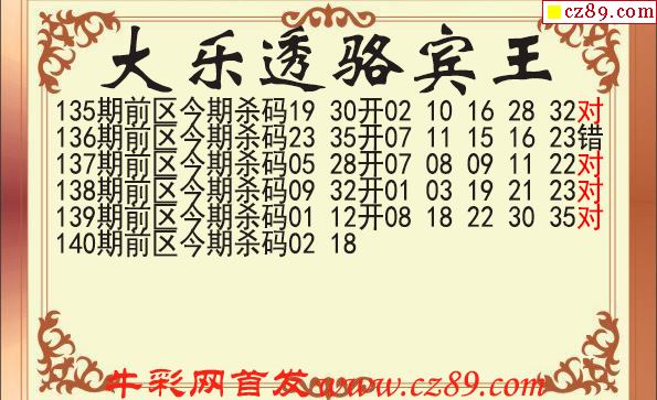 大乐透141期牛彩特邀专家前区后区杀号定胆图表