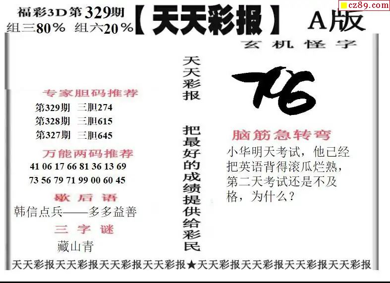 福彩3D2025329期天天彩报A版 天天彩报B版