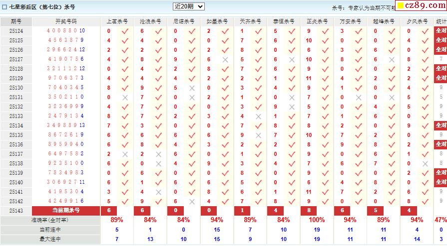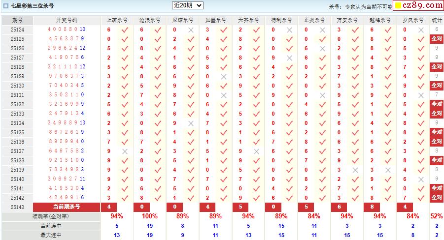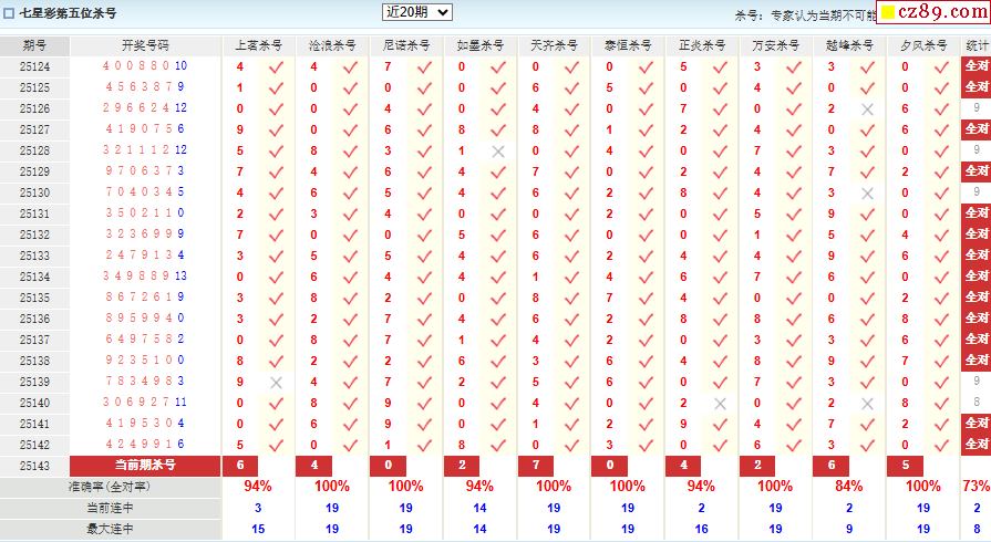 143期彩票专家体彩七星彩定位杀号图表