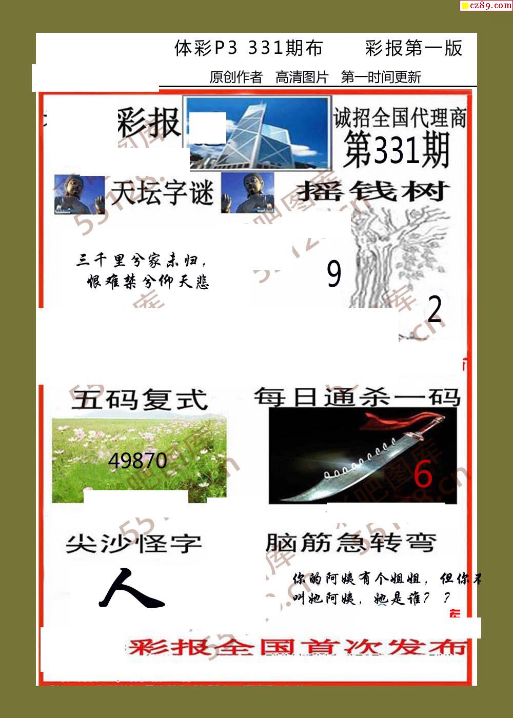 直通车AB版331期体彩p3图谜