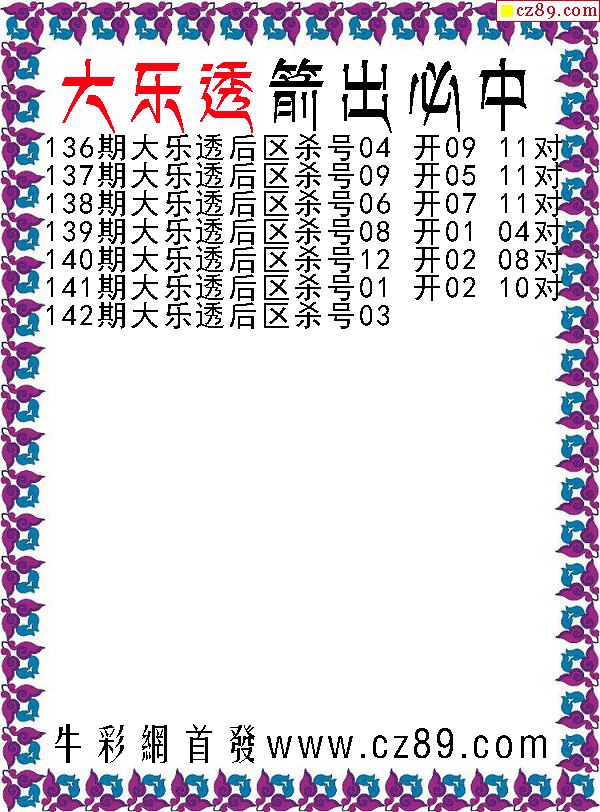 大乐透142期牛彩特邀专家前区后区杀号定胆图表