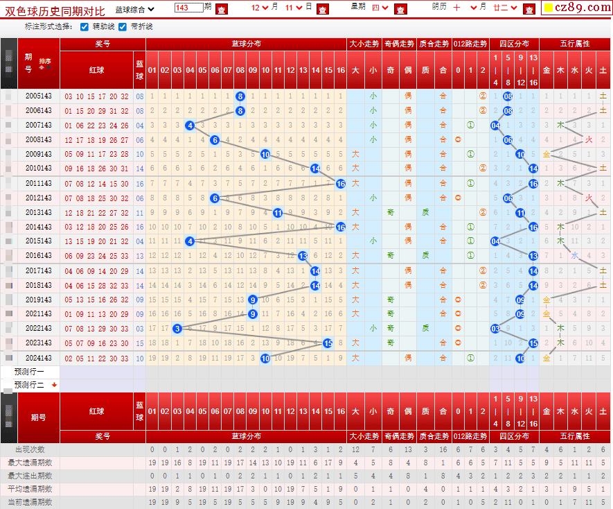 143期双色球历史同期对比图