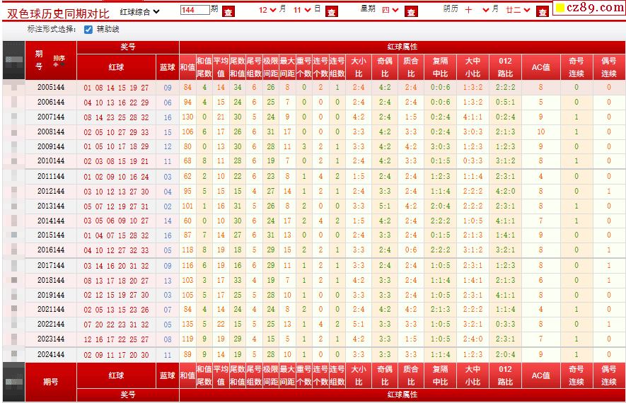 144期双色球历史同期对比图