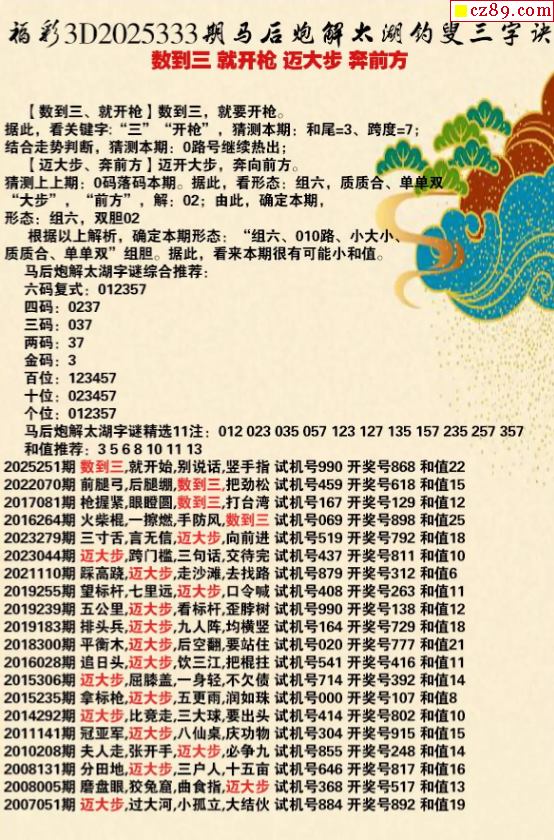 马后炮解25年333期3d太湖钓叟之 迈大步