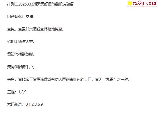 25年体彩P3363期 千山犹绿藏机胆码字谜