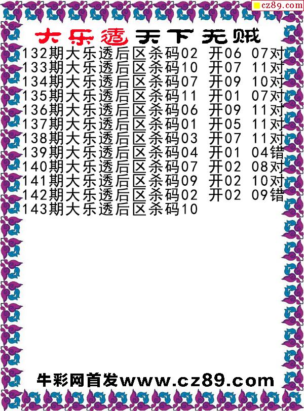 大乐透143期牛彩特邀专家前区后区杀号定胆图表