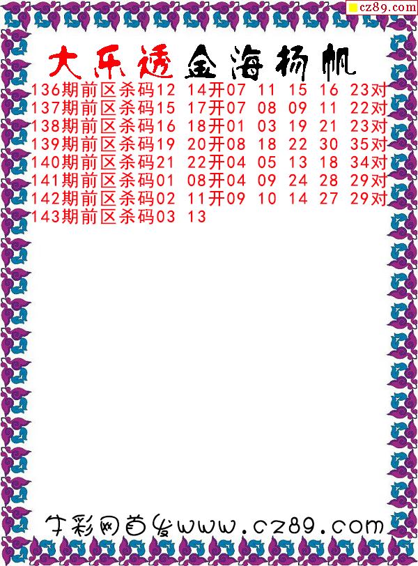 大乐透143期牛彩特邀专家前区后区杀号定胆图表