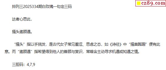 体彩排三2025年334期 武当玉女掌门一句定三码
