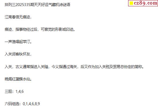 25年336期期温瑞安体彩排列三字谜